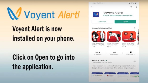 As some devices automatically offload unused apps, registered app users are encouraged to verify that the app is active on their devices. Residents are also encouraged to open their Voyent Alert! app or log into their account to ensure their locations are positioned accurately.