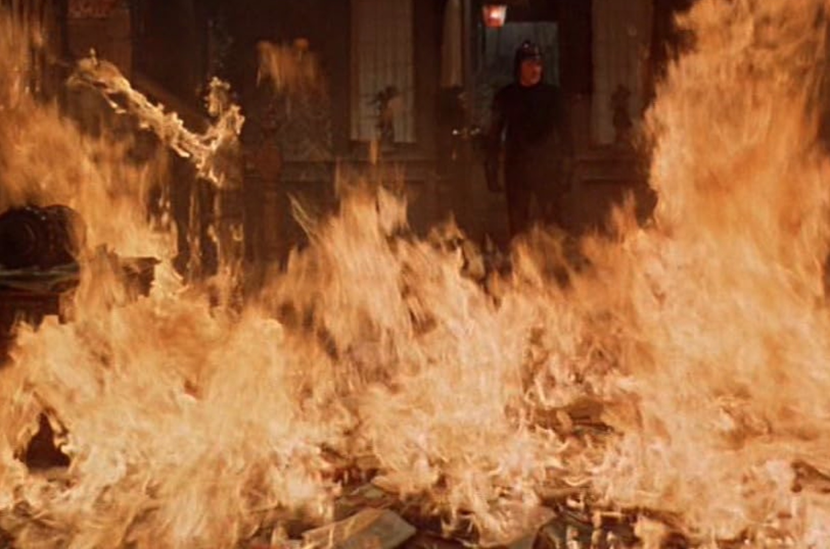 SHADES OF FAHRENHEIT 451. That’s the Ray Bradbury novel from 1953, later made into a couple of movies, about a future in which books have been outlawed and firemen (i.e. firefighters) burn them.
