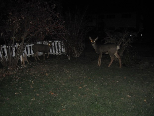Our dog Buddy sensed the presence of deer in our front yard just before 2 a.m. on Nov. 16.  His barks at the window wakened me and looking out the window, I saw the deer in our front yard.  Urban deer have become commonplace not only in Westmount subdivision but in many parts of the city.