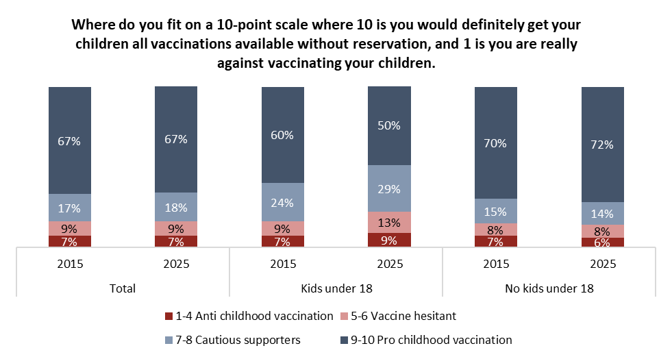 The bad news is that the 95 per cent immunization rate needed to provide herd immunity widely surpasses the number who are supportive of childhood vaccination. Among parents with children younger than 12, 37 per cent feel this should be the parents’ choice, and more than one-in-five (22%) of those with children under 18 can be classified as either hesitant (13%) or opposed (9%) to inoculating their child with the recommended vaccines.