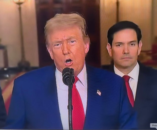 Donald Trump, in full braggadocio mode, and with lapdog Marco Rubio as backup, announces bombing of Iran nuclear facilities.