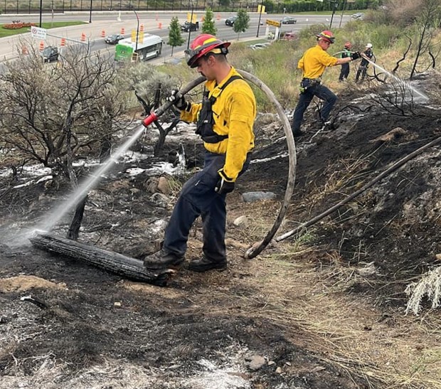 Kamloops Fire Rescue mops up the fire. (Image: KFR)