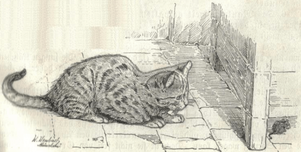 Figure 2: before 1924. Reproduction of a painting of a cat waiting to capture a rodent. Author: Walter Heubach (1865–1923). Https://commons.wikimedia.org/wiki/File:Heubach_cat.jpg