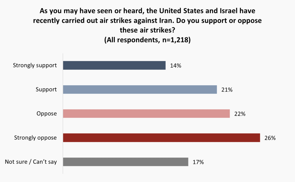 New polling from the non-profit Angus Reid Institute shows there is little consensus about whether this path taken by Israel and the U.S. was the right one.
