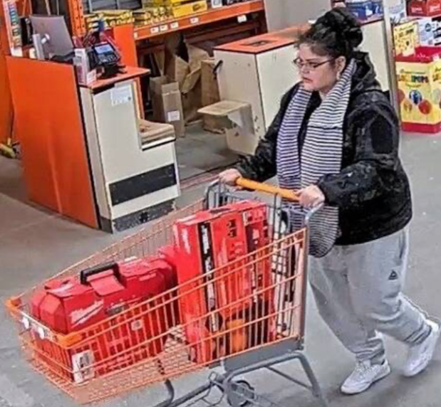 On Feb. 27, 2026, around 1:20 p.m., police received a report of theft that occurred near the 1000-block of Hillside Drive where a woman allegedly stole a Milwaukee Rotary Hammer Kit and two Milwaukee Heated Women’s Jackets with a total value of just under $800.