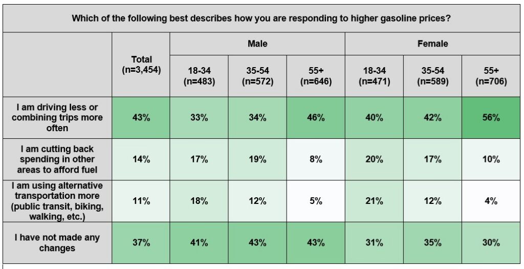 Three-in-five say increasing gas prices have already led to personal behavioural change