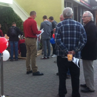 Launch day for CBC Daybreak Radio in October 2012. That’s the Armchair Mayor on the right. (Image: CBC file photo)