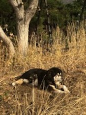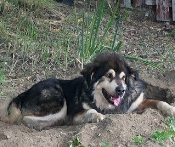He was adopted into our farm life – with the cats and cattle , promptly re-sculpting numerous garden and dirt areas as cooling beds for the hot summers of Kamloops. Clearly this was an unusual transition for a ‘ northern climate ‘ dog!